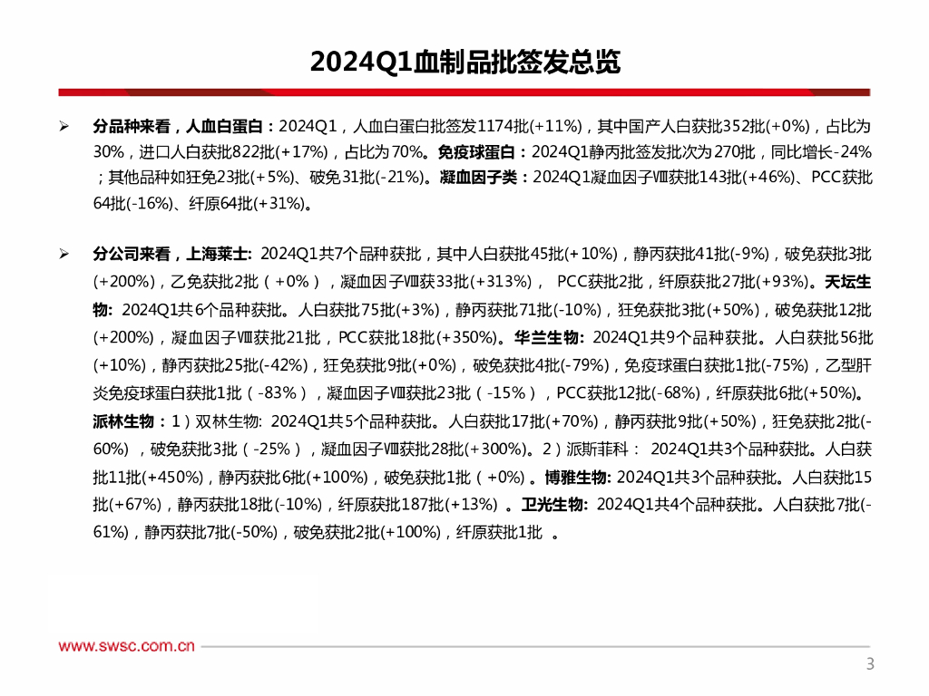 西南证券:2024Q1血制品行业跟踪报告(附批签发).pdf