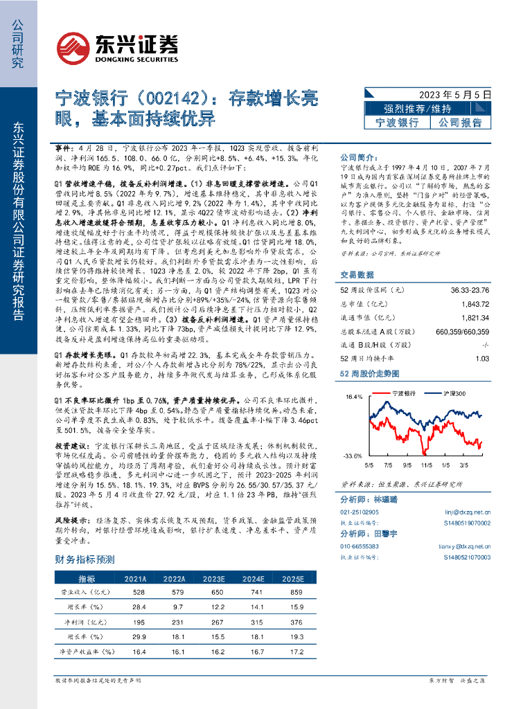 东兴证券:宁波银行(002142)-存款增长亮眼,基本面持续优异.pdf
