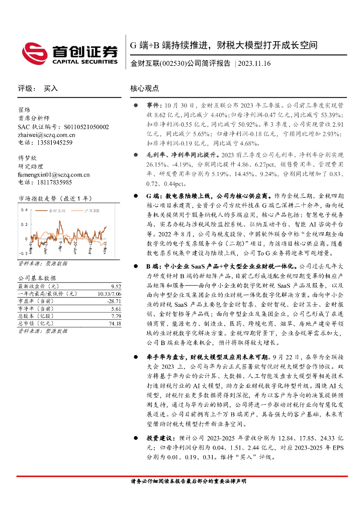 首创证券:金财互联(002530)-公司简评报告:G端+B端持续推进,财税大模型打开成长空间.pdf