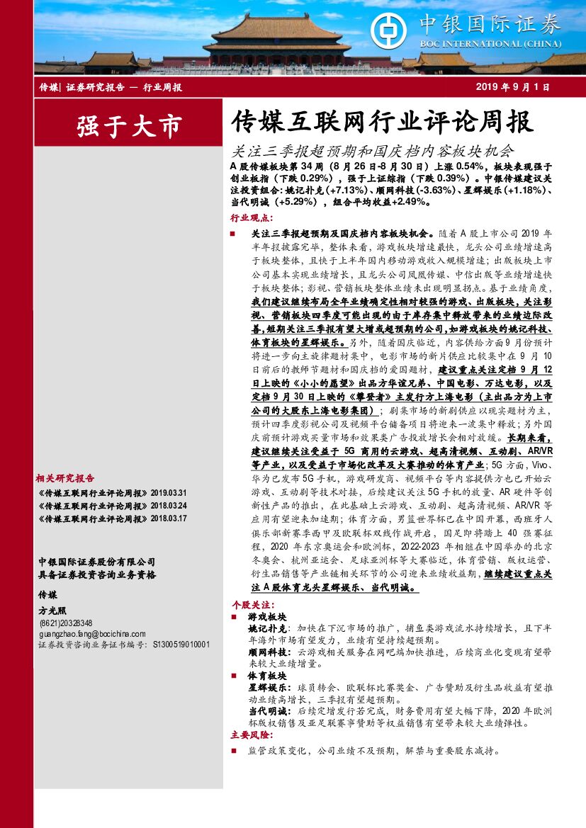中银国际:传媒互联网行业评论周报:关注三季报超预期和国庆档内容板块机会.pdf