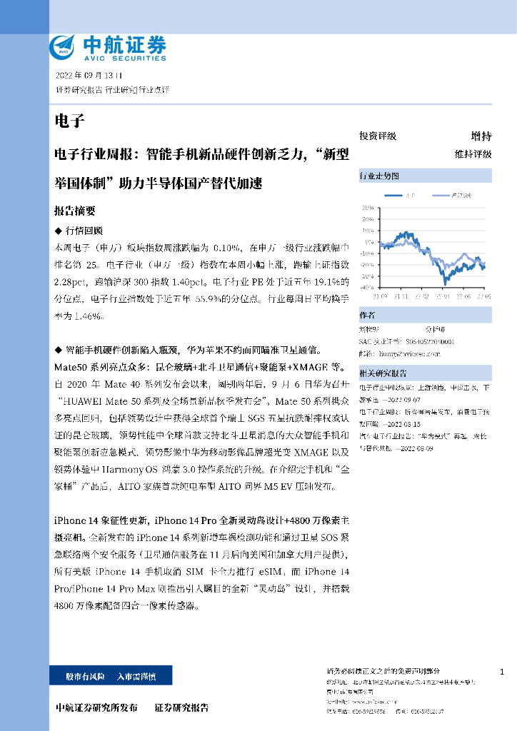 中航证券:电子行业周报:智能手机新品硬件创新乏力,“新型举国体制”助力半导体国产替代加速.pdf