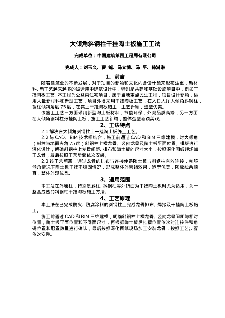 QHGF-2022044 大倾角斜钢柱干挂陶土板施工工法.doc