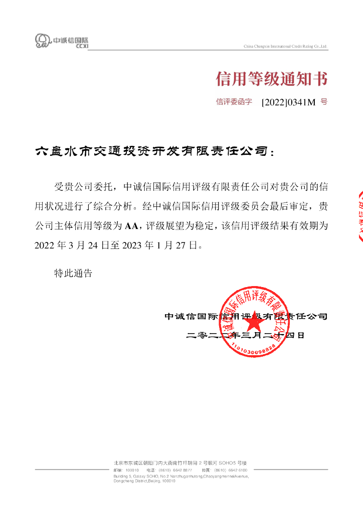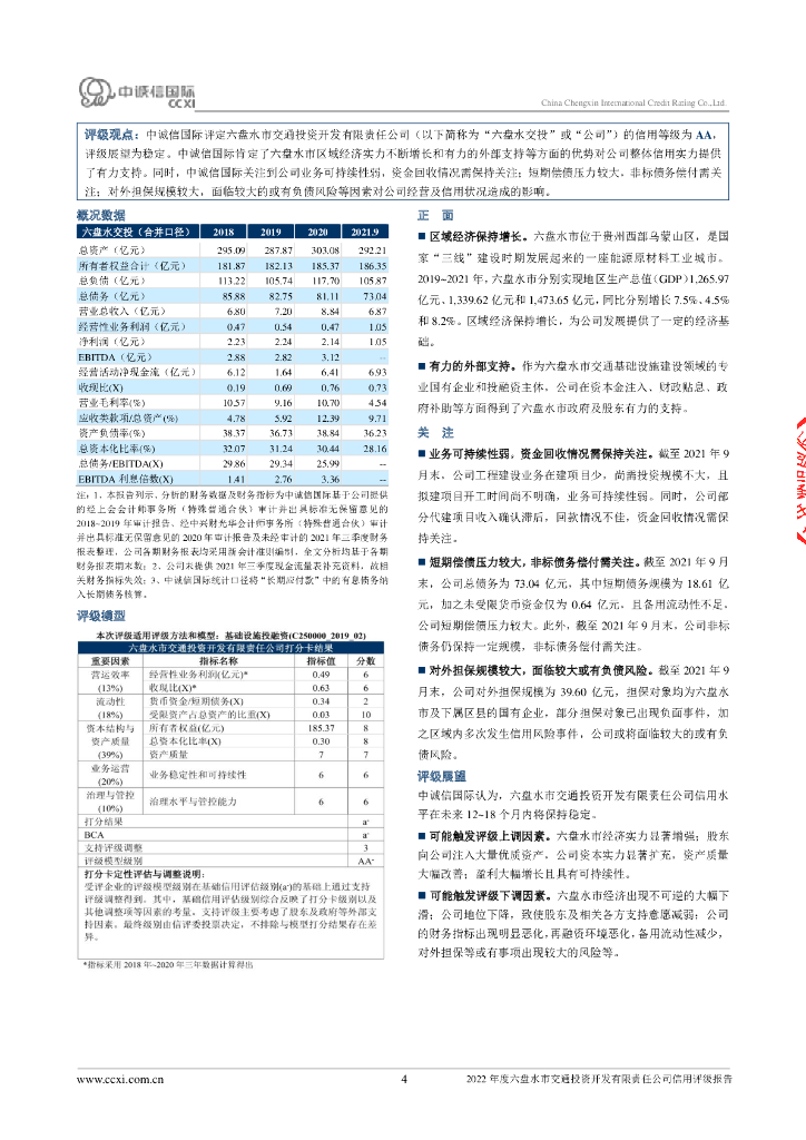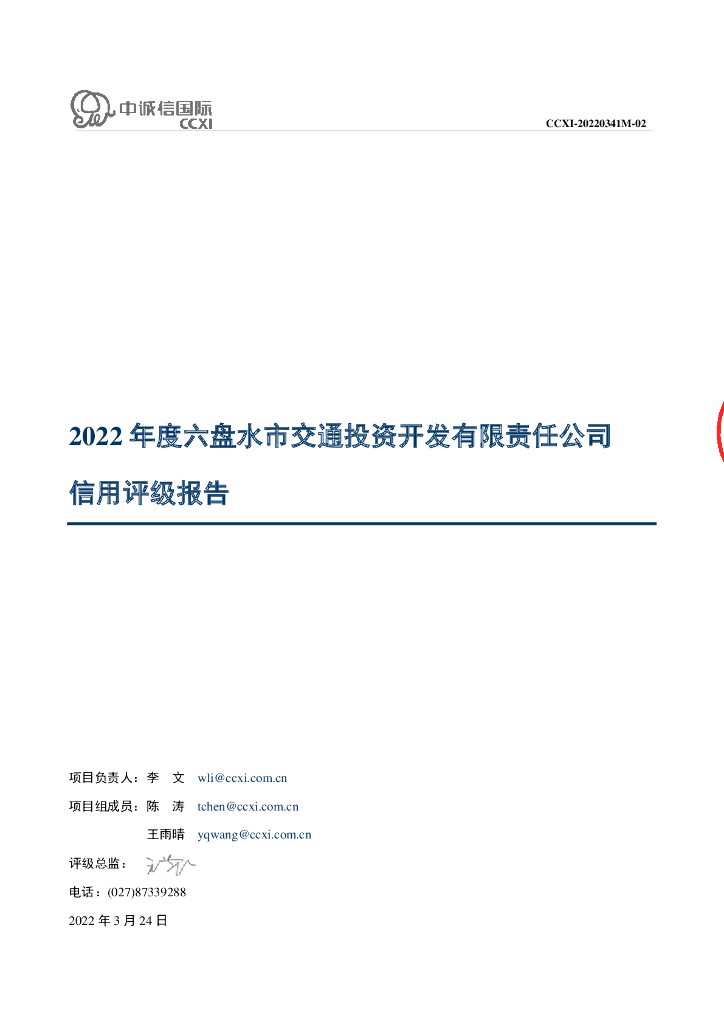 中诚信:2022年度六盘水市交通投资开发有限责任公司信用评级报告.pdf