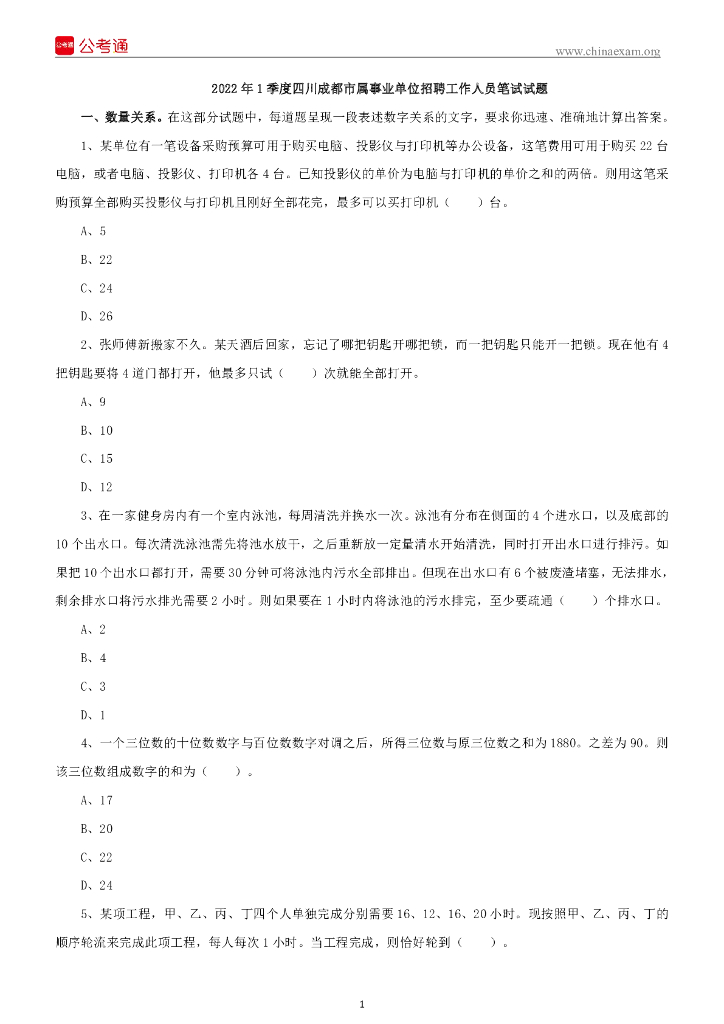 2022年1季度四川成都市属事业单位招聘工作人员笔试试题.pdf
