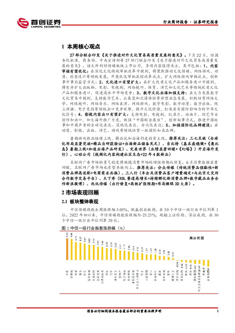 首创证券:互联网传媒行业简评报告:行业政策面向好,多部门联发文件推进文化出海.pdf