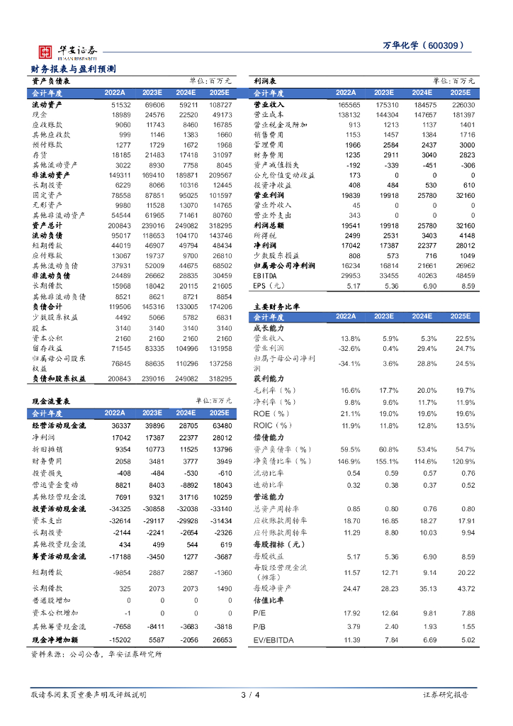 华安证券:万华化学(600309)-四季度业绩同比改善,新产能落地成长可期.pdf