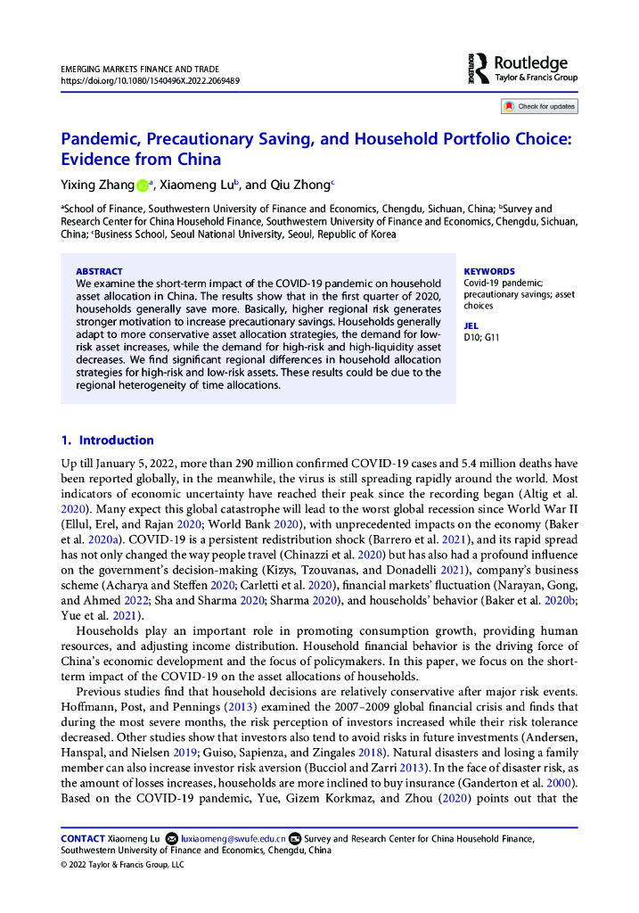 大流行、预防性储蓄与家庭投资组合选择:来自中国的经验证据(英文版).pdf