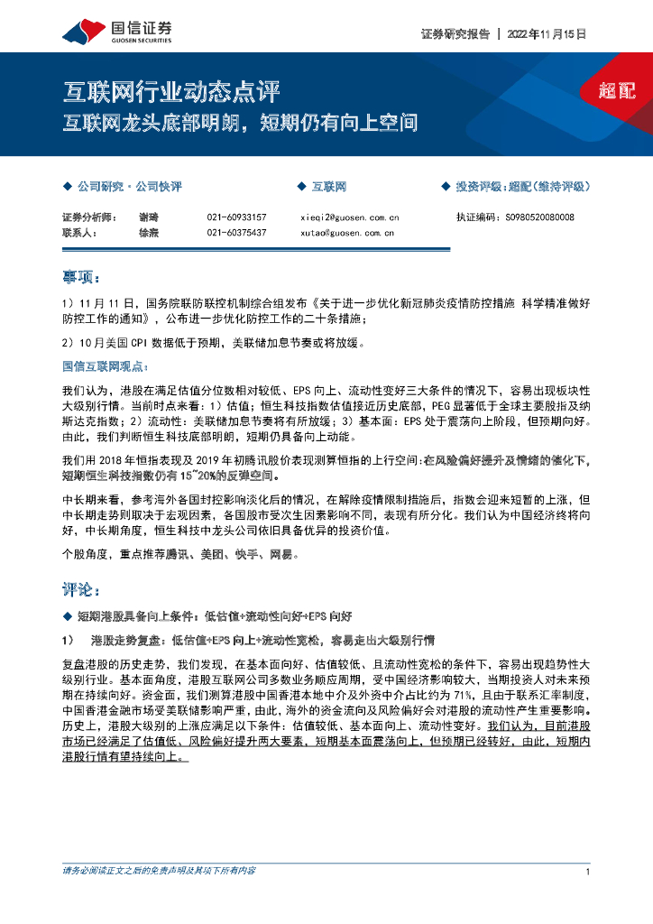 国信证券:互联网行业动态点评:互联网龙头底部明朗,短期仍有向上空间.pdf