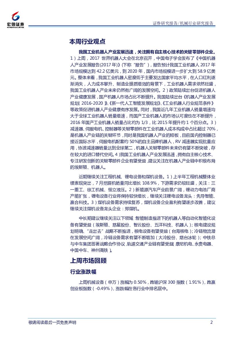 宏信证券:机械行业周报:我国工业机器人产业发展迅速,关注拥有自主核心技术的关键零部件企业.pdf