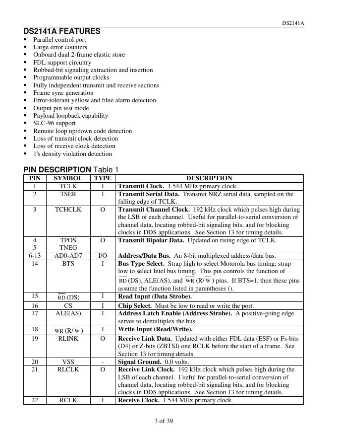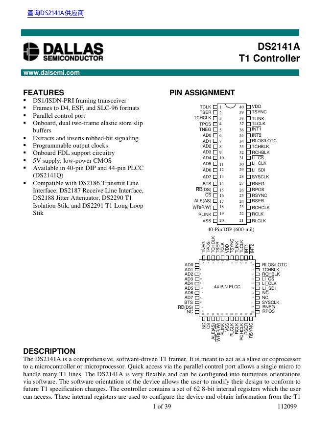 DALLAS DS2141A T1 Controller 数据手册.pdf