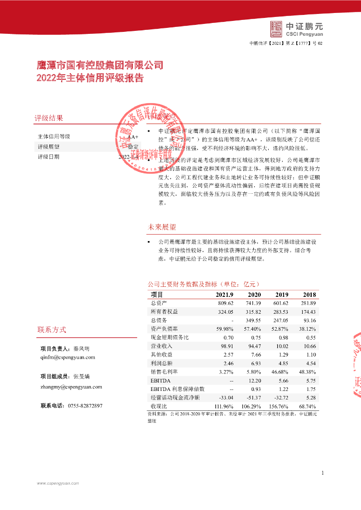 鹏元:鹰潭市国有控股集团有限公司2022年主体信用评级报告.pdf
