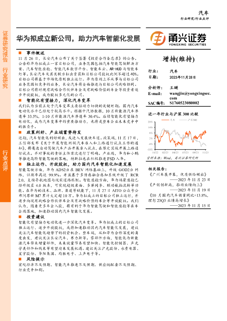 甬兴证券:汽车行业点评:华为拟成立新公司,助力汽车智能化发展.pdf