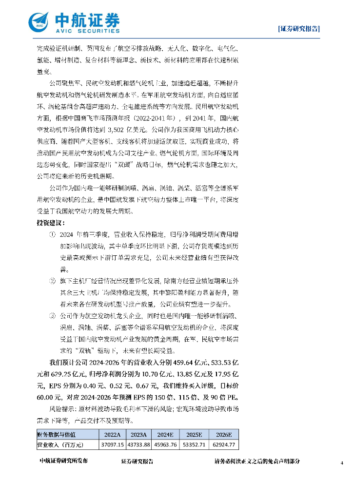 中航证券:航发动力(600893)-2024年三季报点评:存货达到历史最高规模.pdf