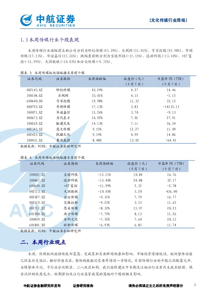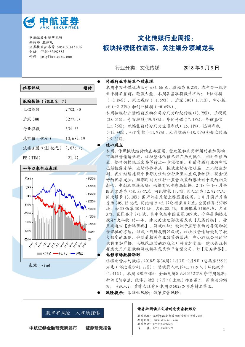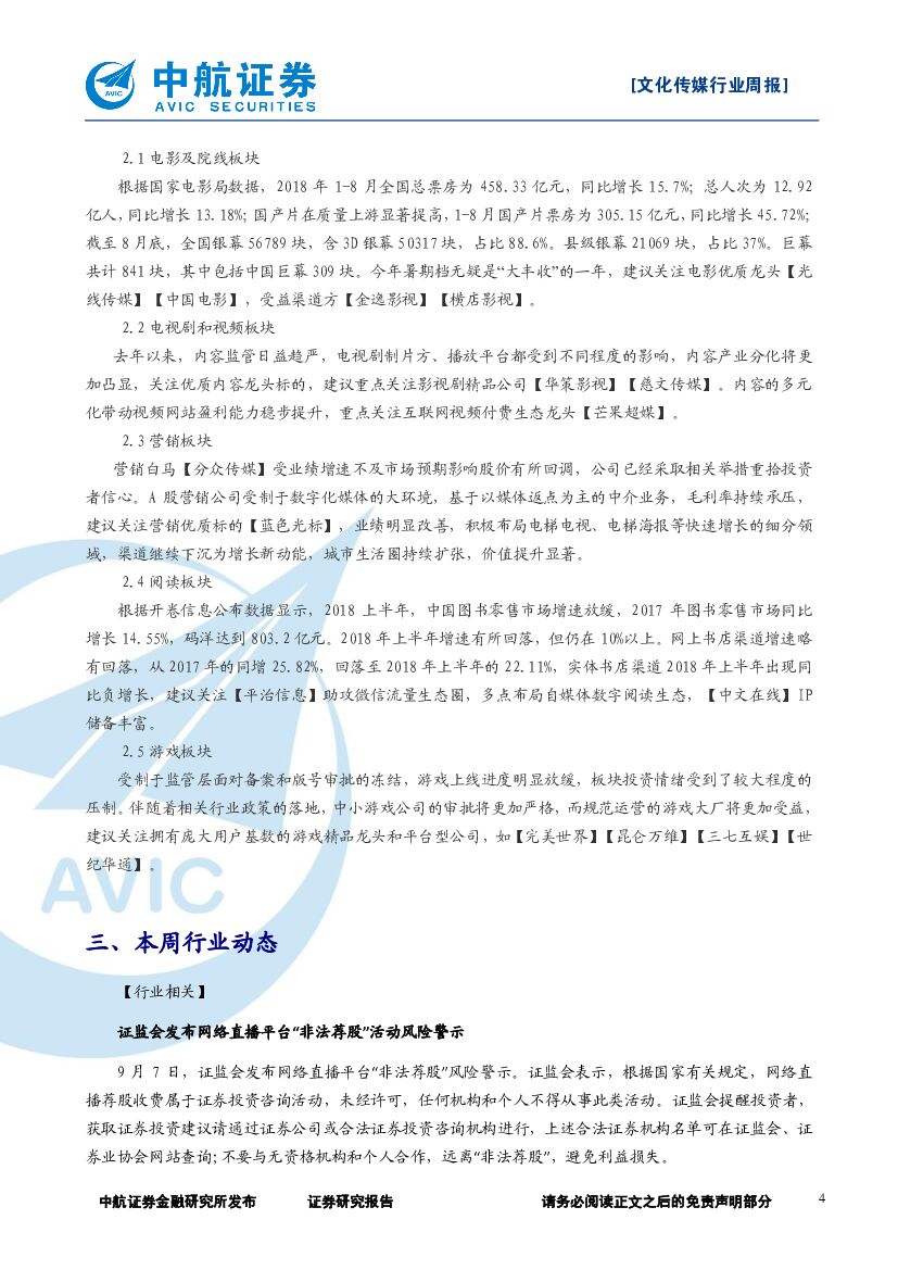 中航证券:文化传媒行业周报:板块持续低位震荡,关注细分领域龙头.pdf