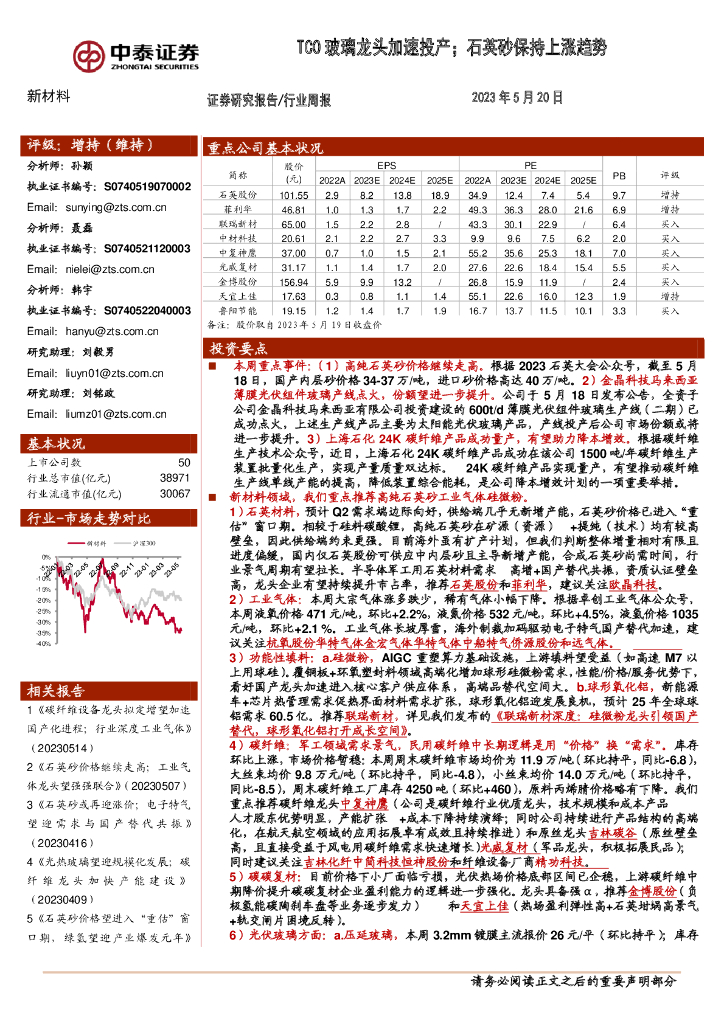 中泰证券:新材料行业周报:TCO玻璃龙头加速投产;石英砂保持上涨趋势.pdf
