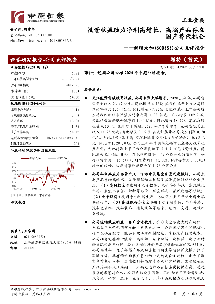 中原证券:新疆众和(600888)-公司点评报告:投资收益助力净利高增长,高端产品存在国产替代机会.pdf
