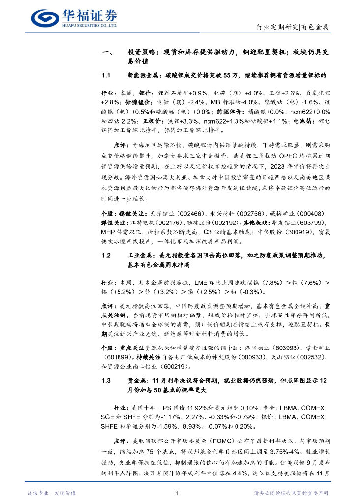 华福证券:有色金属行业周报:供需偏紧凸显铜迎配置契机,资源开发缓慢继续推荐锂板块.pdf