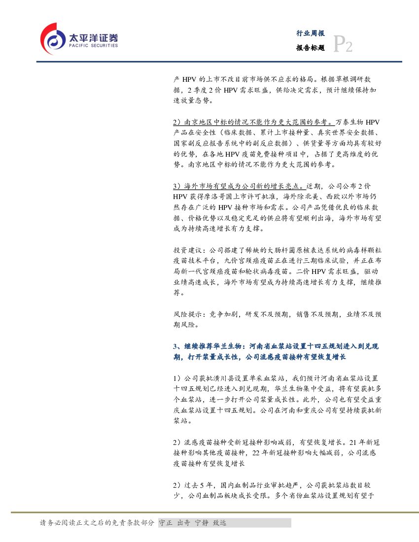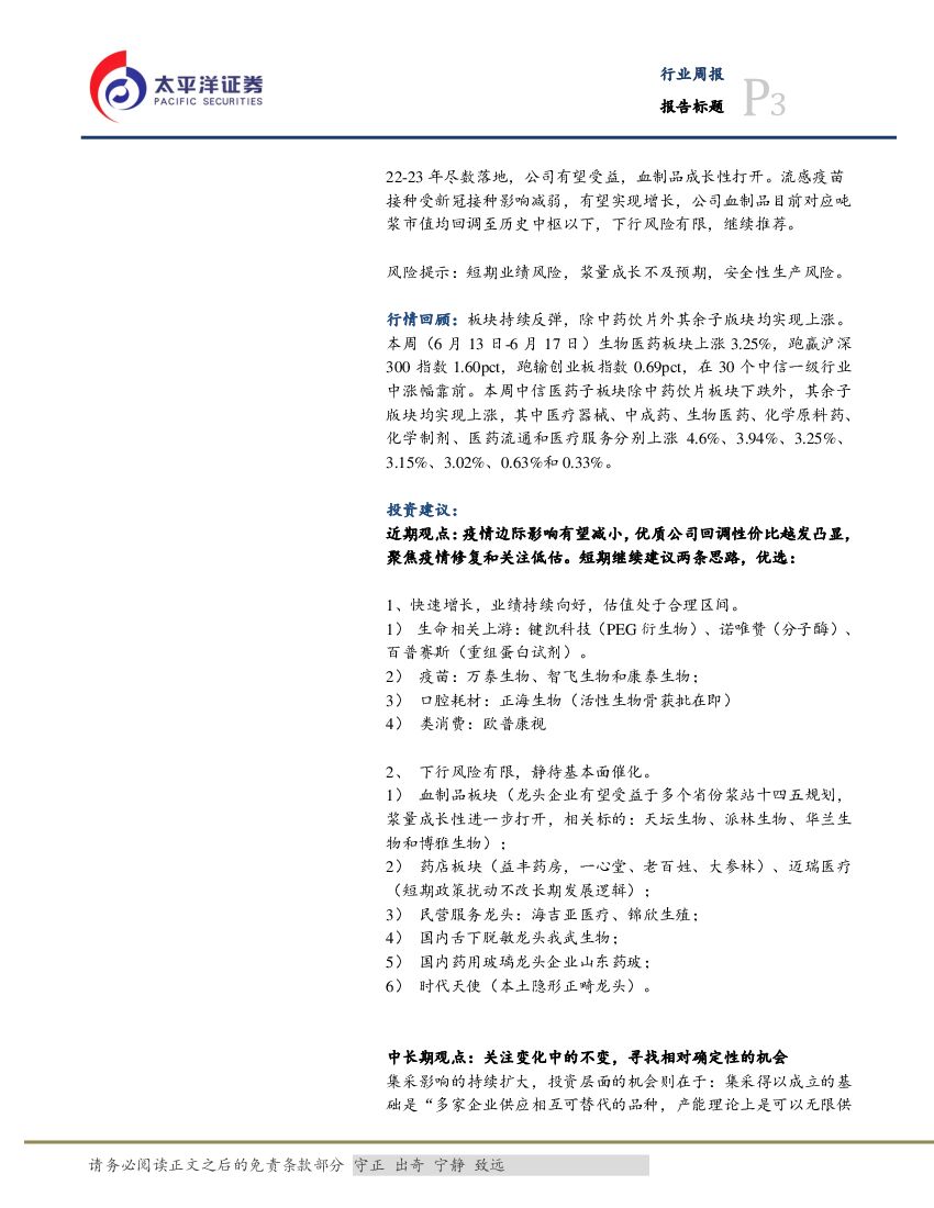 太平洋证券:医药生物行业周报:关注边际改善和低估,继续推荐欧普康视、华兰生物和万泰生物.pdf