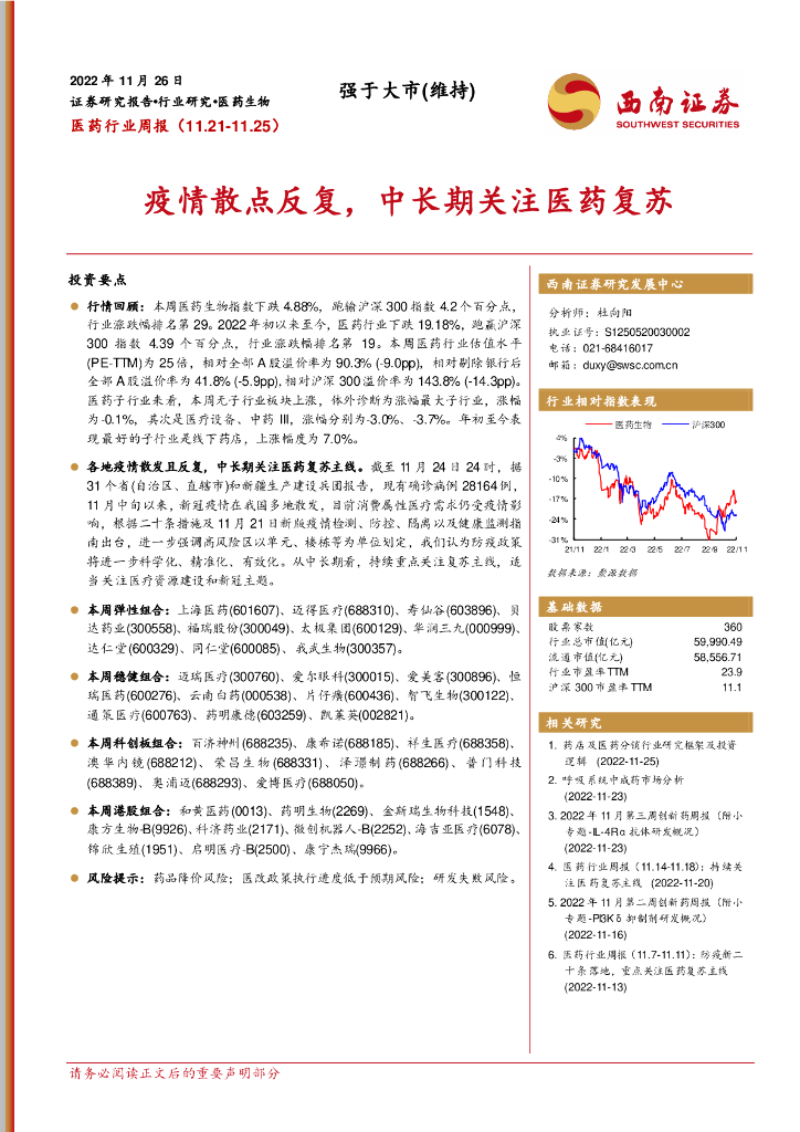 西南证券:医药行业周报:疫情散点反复,中长期关注医药复苏.pdf