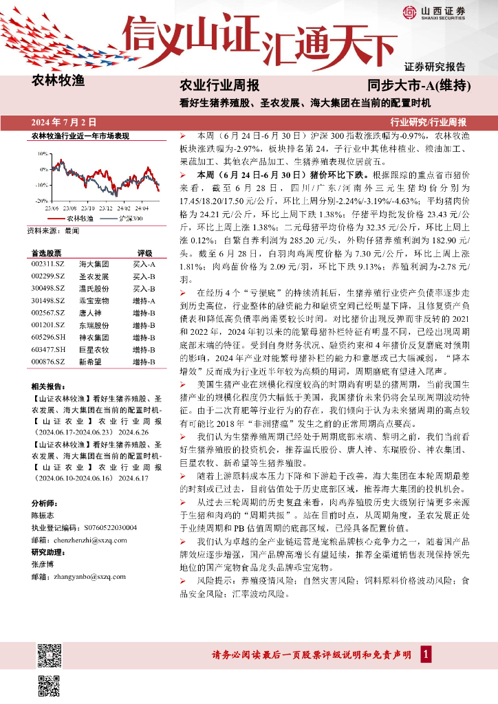 山西证券:农业行业周报:看好生猪养殖股、圣农发展、海大集团在当前的配置时机.pdf