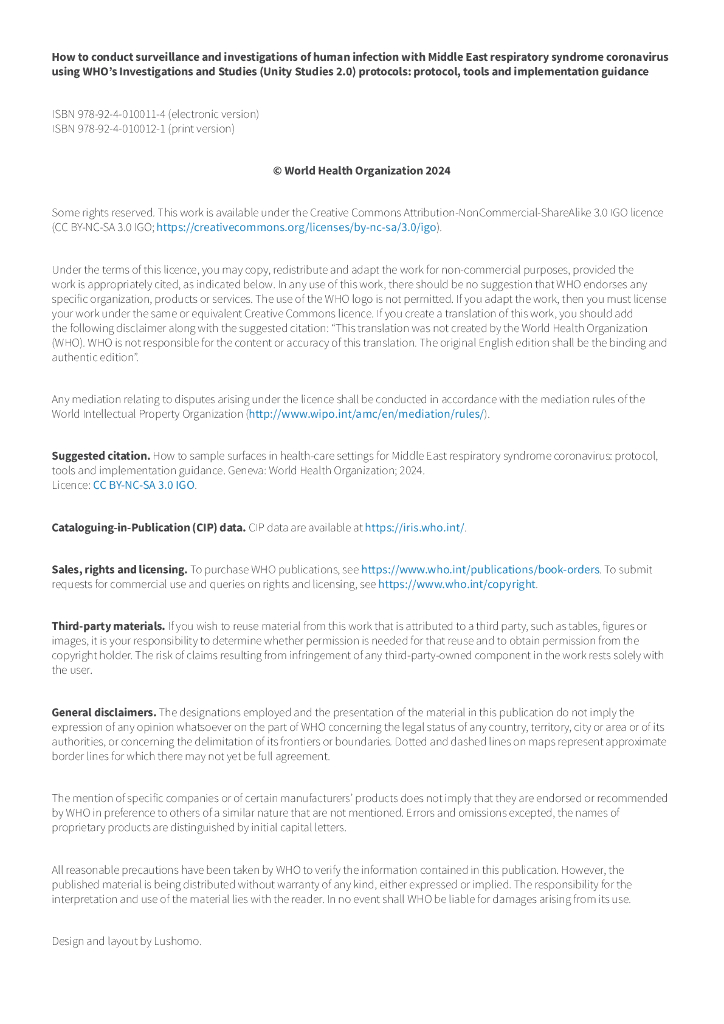 WHO世界卫生组织:2024年如何使用世卫组织的调查和研究(Unity Studies 2.0)协议对人类感染中东呼吸综合征冠状病毒进行监测和调查报告(英文版).pdf