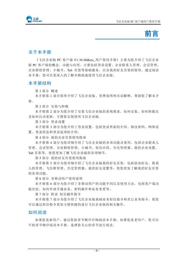中国移动通信 飞信企业版 PC 客户端 用户使用手册.pdf