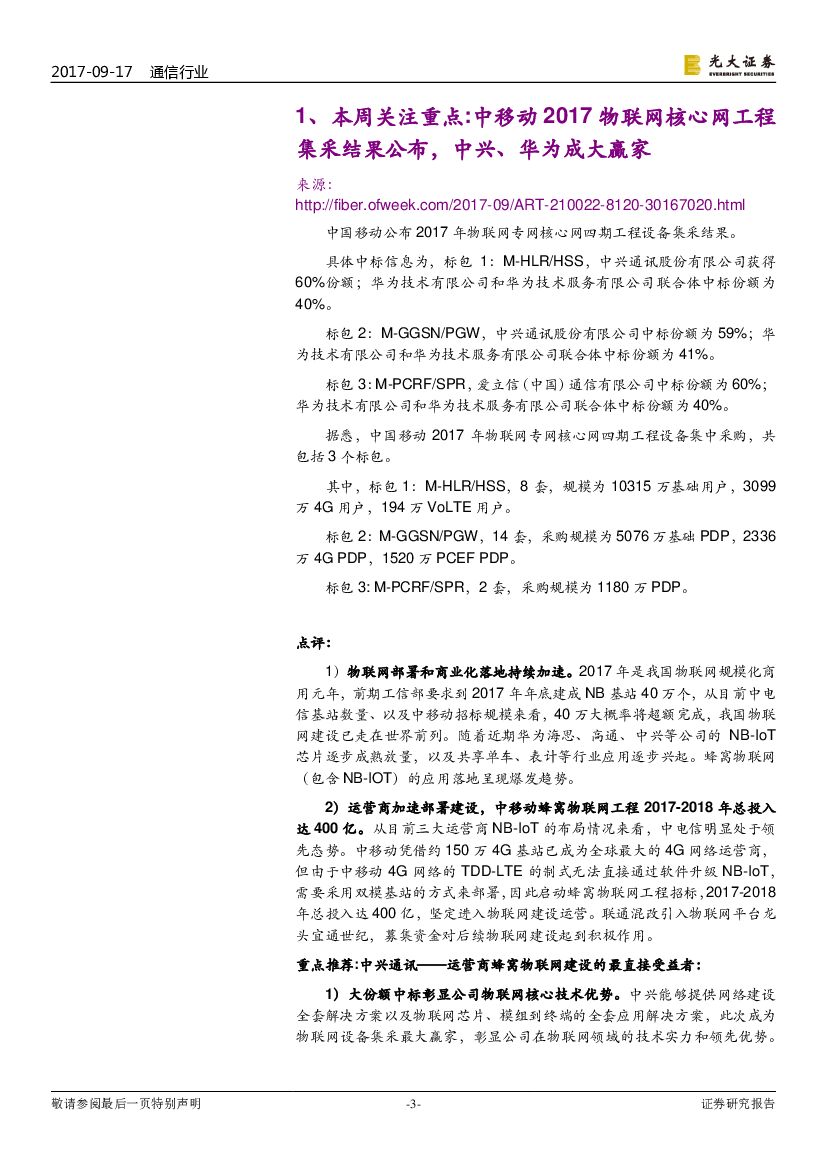 光大证券:通信行业行业周报:中移动2017物联网核心网集采,中兴、华为成大赢家.pdf