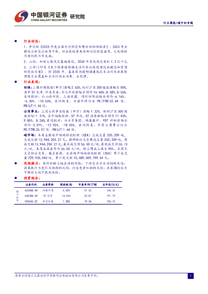 中国银河:环保公用行业周报:中电联发布《2023年度全国电力供需形势分析预测报告》,预计2023年全国电力供需总体紧平衡.pdf