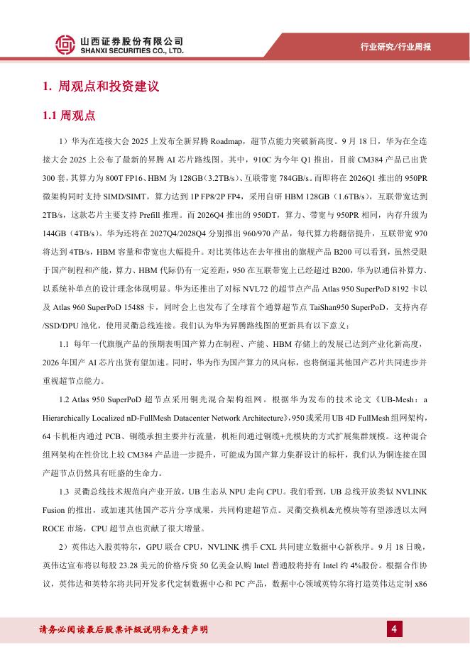 山西证券:通信行业周跟踪:昇腾950引领国产超节点新时代,英伟达入股英特尔有望扩大NVLINK版图.pdf