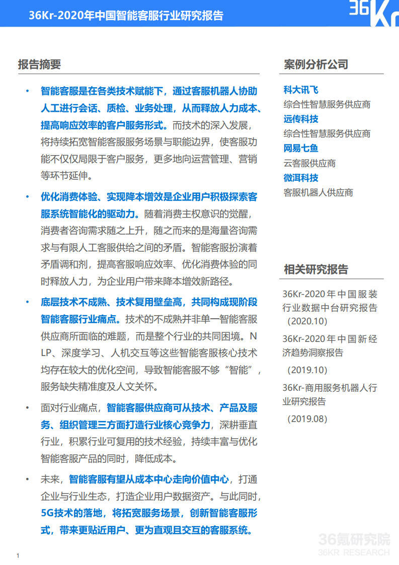 36氪研究院: 2020年中国智能客服行业研究报告.pdf