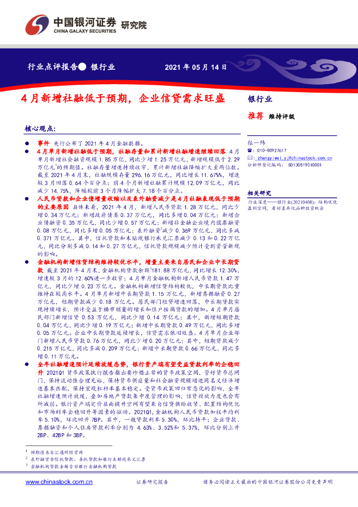 中国银河:银行业:4月新增社融低于预期,企业信贷需求旺盛.pdf