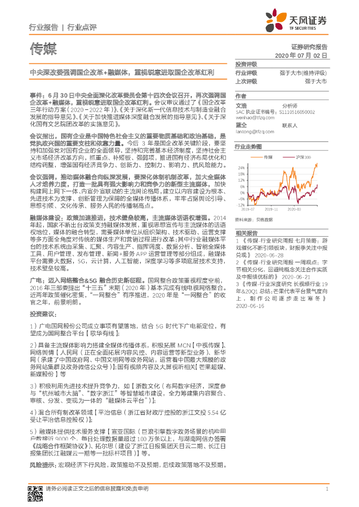 天风证券:传媒:中央深改委强调国企改革+融媒体,重视锐意进取国企改革红利.pdf