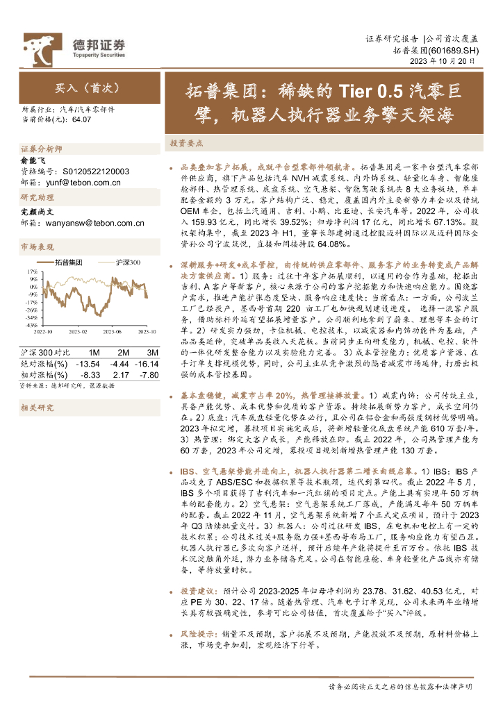 德邦证券:拓普集团:稀缺的Tier 0.5汽零巨擘,机器人执行器业务擎天架海.pdf