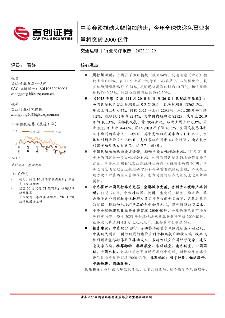 首创证券:交通运输行业简评报告:中美会谈推动大幅增加航班;今年全球快递包裹业务量将突破2000亿件.pdf