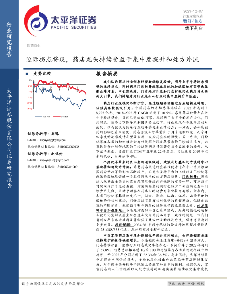 太平洋证券:2023线下药店行业深度报告——边际拐点将现,药店龙头持续受益于集中度提升和处方外流.pdf