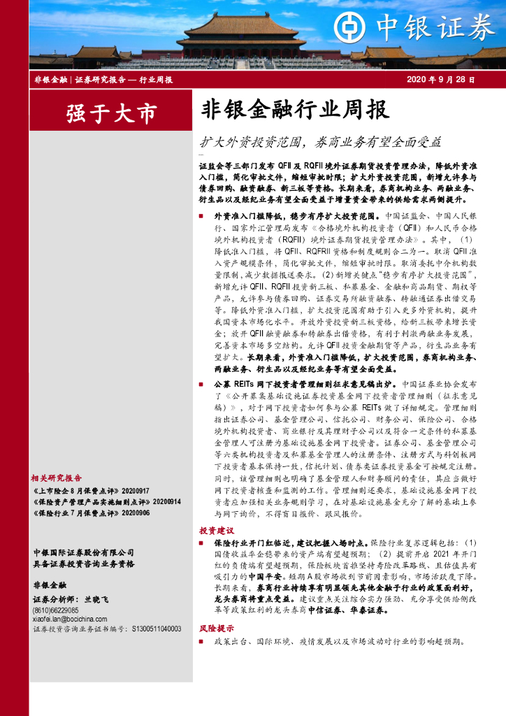 中银证券:非银金融行业周报:扩大外资投资范围,券商业务有望全面受益.pdf
