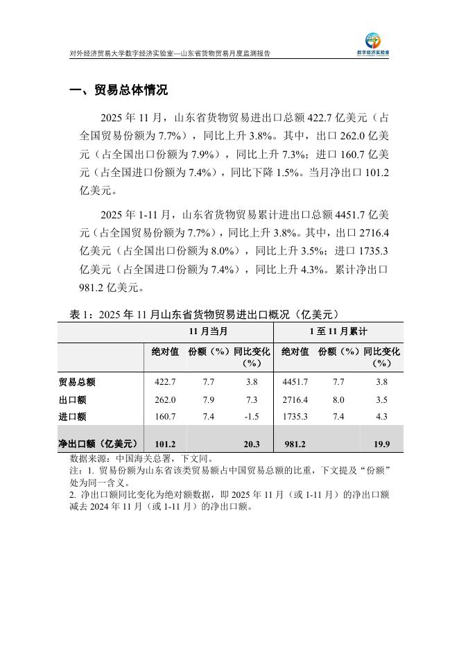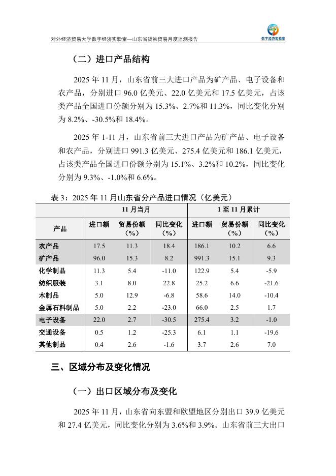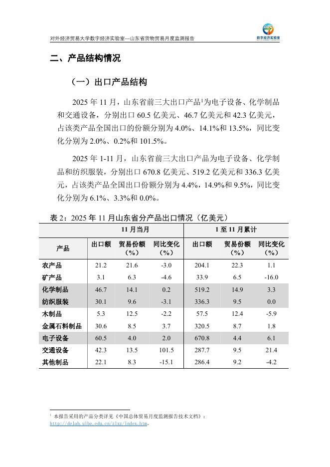 对外经济贸易大学:山东省货物贸易月度监测报告(2025年1-11月).pdf