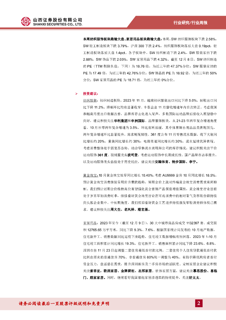 山西证券:纺织服装行业周报:11月丰泰企业营收增速转正,我国纺织服装出口降幅收窄.pdf