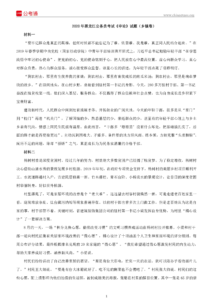 2020年黑龙江公务员考试申论试题及参考答案(乡镇卷).pdf
