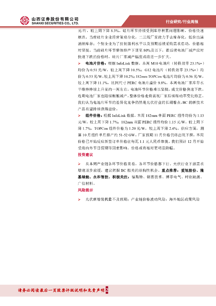 山西证券:太阳能行业周报:1-9月国内光伏新增装机同比增长145%,产业链价格全面下行.pdf