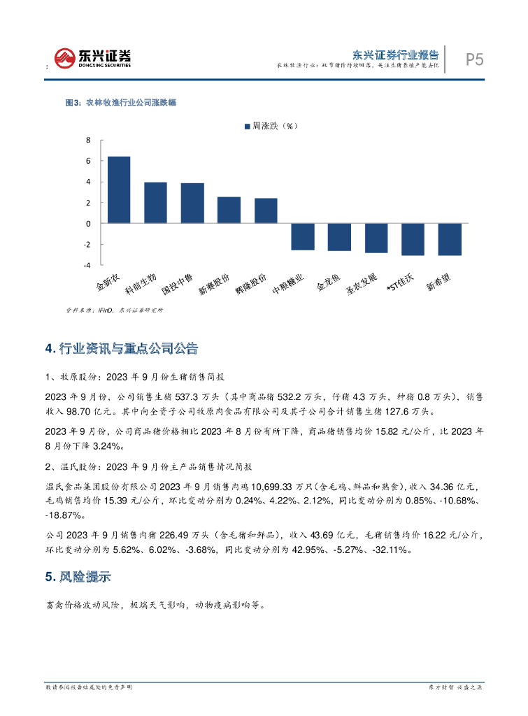 东兴证券:农林牧渔行业周观点(2023年第40周):双节猪价持续回落,关注生猪养殖产能去化.pdf