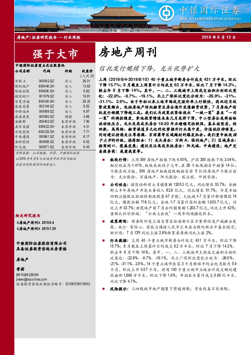 中银国际:房地产周刊:信托发行规模下降,龙头优势扩大.pdf