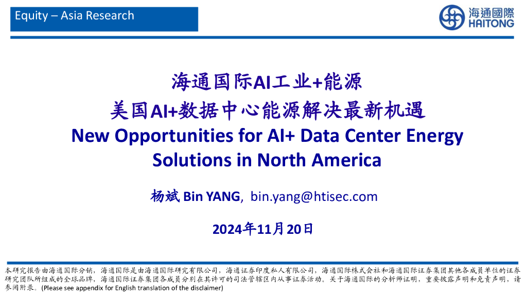 海通国际:AI工业+能源美国AI+数据中心能源解决最新机遇.pdf