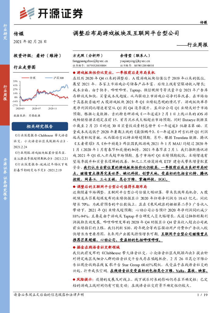 开源证券:传媒行业周报:调整后布局游戏板块及互联网平台型公司.pdf