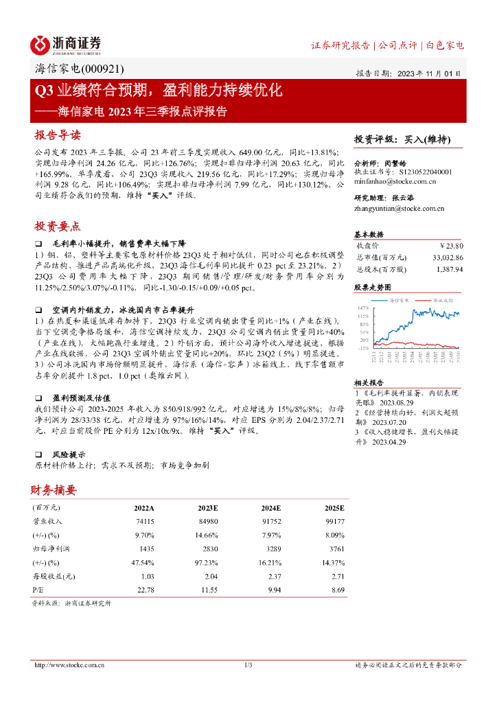 浙商证券:海信家电(000921)-Q3业绩符合预期,盈利能力持续优化.pdf