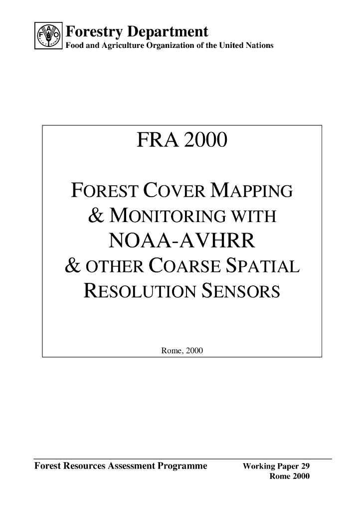 FAO联合国粮农组织:FRA 2000-使用NOAA-AVHRR和其他粗空间分辨率传感器进行森林覆盖测绘和监测报告(英文版).pdf