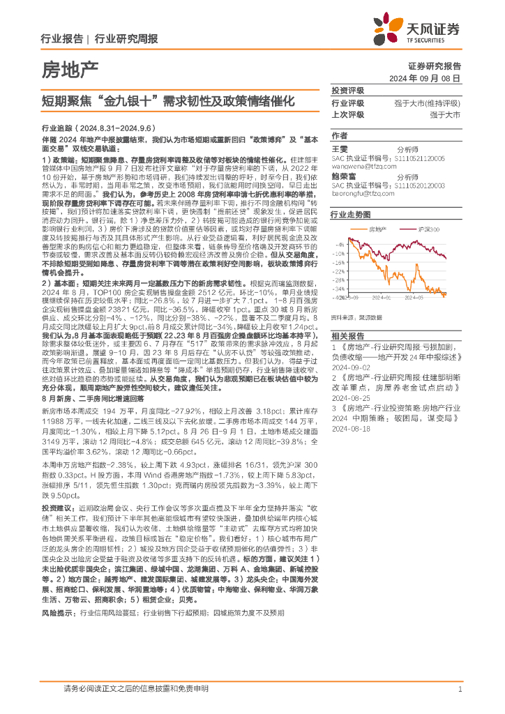 天风证券:房地产行业研究周报:短期聚焦“金九银十”需求韧性及政策情绪催化.pdf