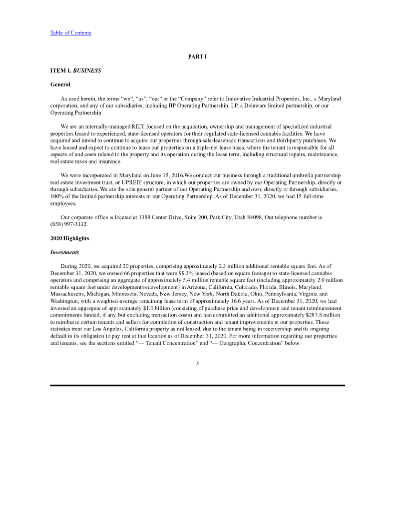 Innovative Industrial Properties Inc(IIPR)2020财年年度报告(英文版).pdf