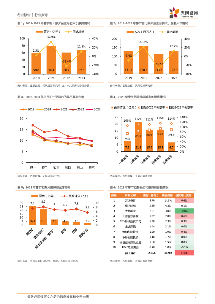 天风证券:影视院线:23年春节档票房67.58亿历史第二,超19年仅次于21年,关注供给侧修复下影院板块盈利提升.pdf