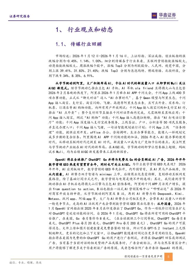华鑫证券:传媒行业周报:OpenAI将测试AI广告阿里与字节竞相卡位AI新入口.pdf